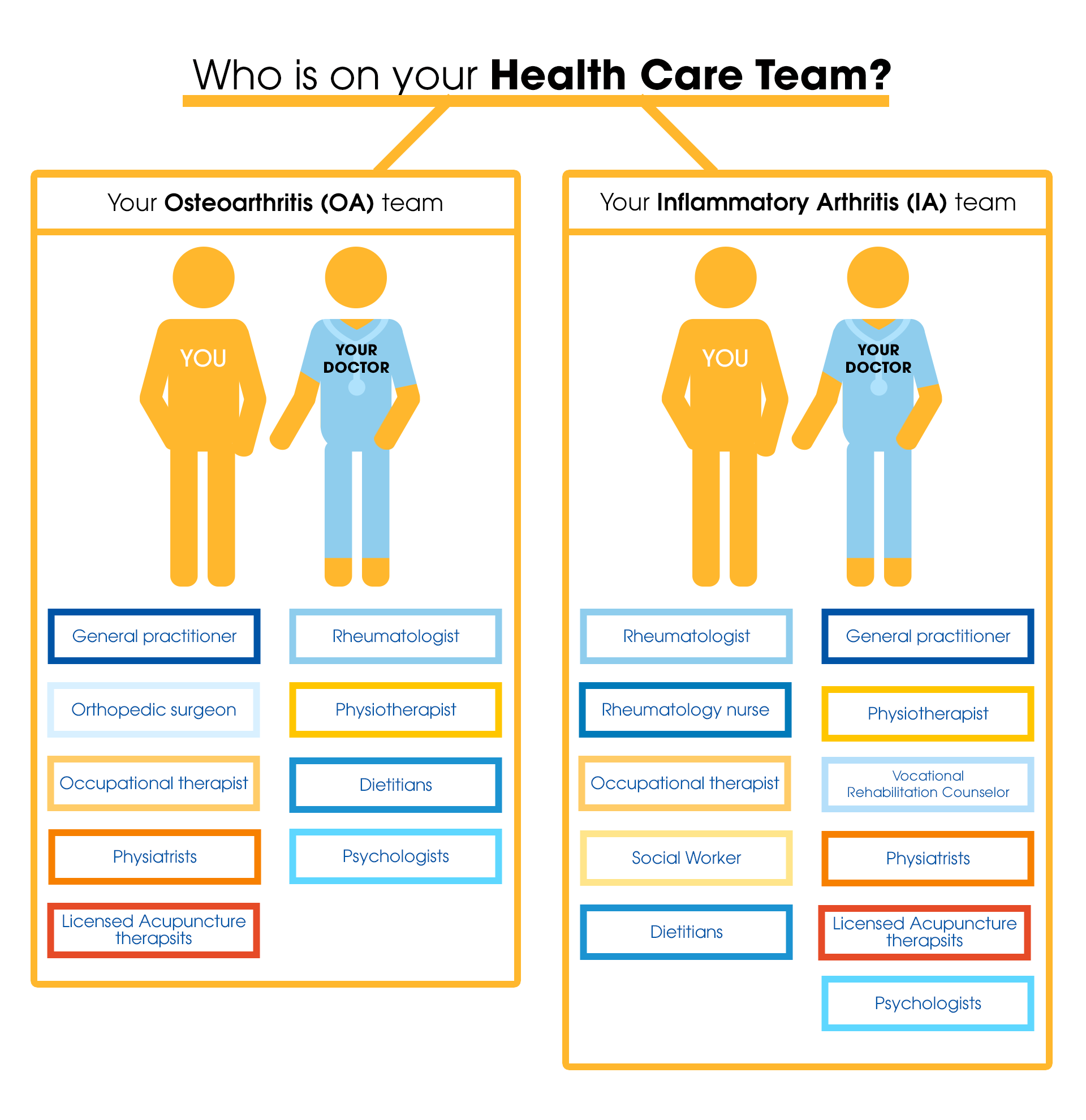 In the live and final version, the links open a popup with detailed information of what the medical professional does and how they help arthritis patients.